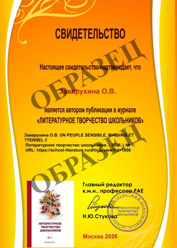 Заварухина О.В. UN PEUPLE SENSIBLE, MAUVAIS ET ?TERNEL // Литературное творчество школьников. 2026. № 1. ;URL: https://school-literature.ru/ru/article/view?id=1856 (дата обращения: 16.04.2026).